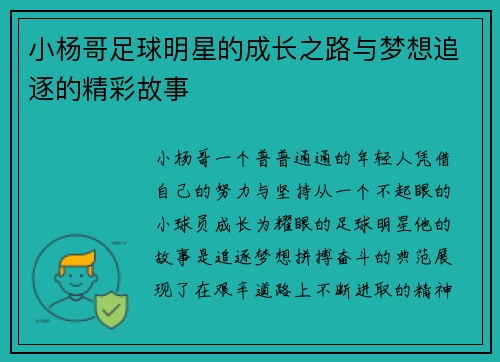 本文旨在深入探讨足球明星的成长历程与成就,通过数据分析揭示他们在职业生涯中的关键节点及其对足球运动的深远影响。首先,文章将回顾足球明星的早期生活和训练经历,这一阶段为他们日后的成功奠定了基础。接着,文章将分析这些球员在职业生涯中的重大成就,包括奖项、比赛表现以及对球队的贡献。此外,文章还会探讨足球明星如何通过自身影响力推动足球文化的发展,并激励新一代球员。最后,总结部分将概述这些因素如何共同构成了...